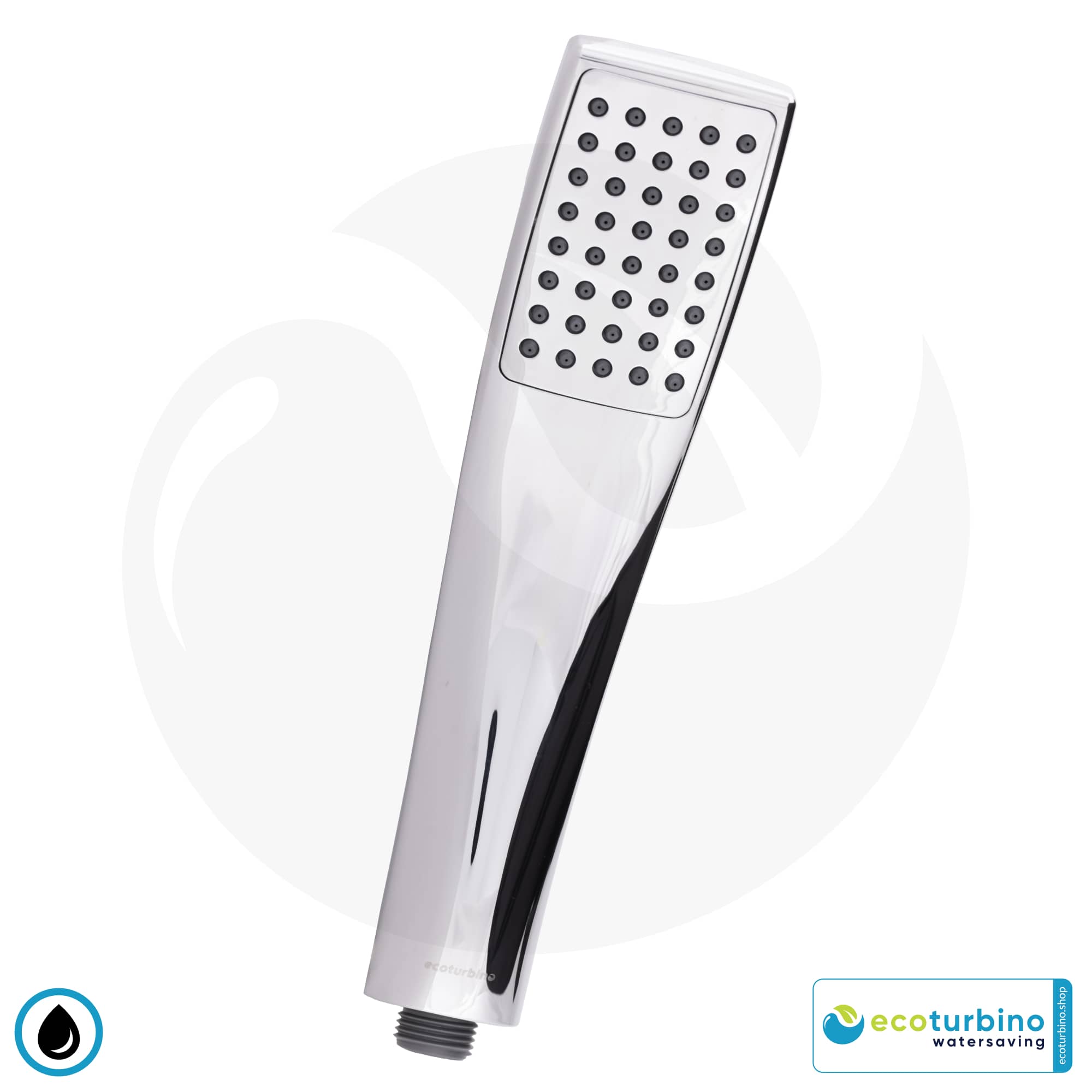 The ecoturbino shower adapter is a real solution for full shower enjoyment while simultaneously saving significant amounts of water and costs. This is made possible by an invention that creates a highly swirled water-air mixture.